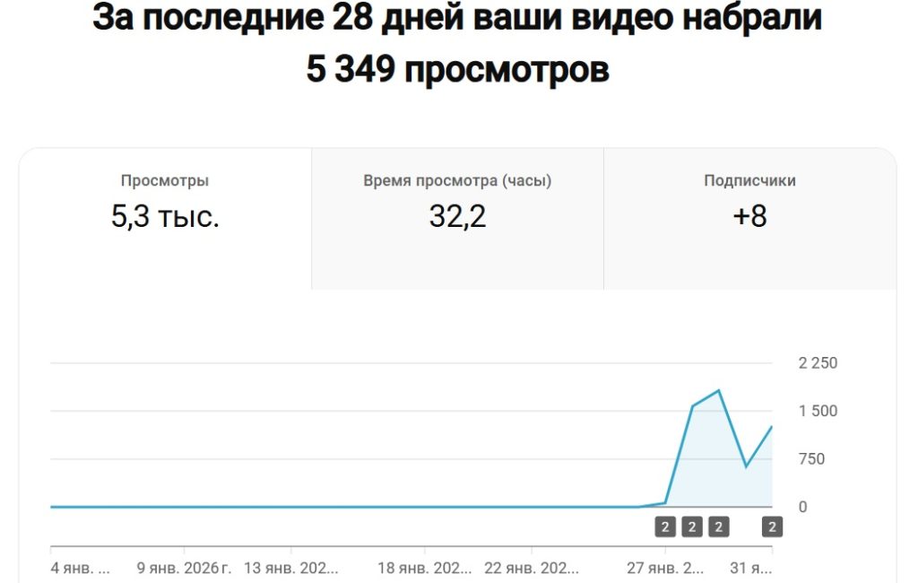 Запустили новый канал в конце января 2026 года. В наличие 10 видео об услугах самозанятого. Размещаем дозировано, по схожей тематике. За публикацией контента следит маркетолог. Контент-план под вид деятельности самозанятого составил маркетолог. Оформление канала — маркетолог + ИИ.